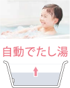 浴そうのお湯の量が減ったり温度が下がったりしても、「たし湯」や「追いだき」を自動的に切り替えながら効率のよい方法を判断するかしこい機能です。